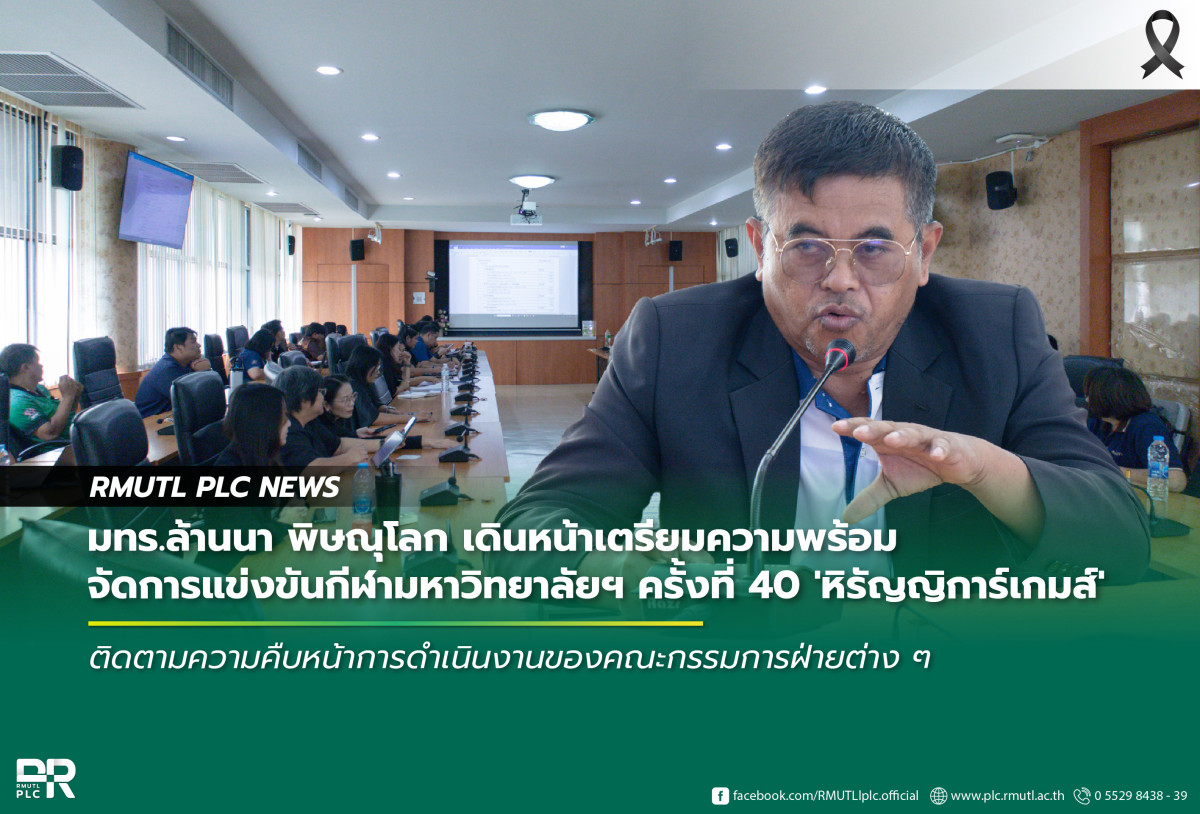 7 พฤศจิกายน 2568 มหาวิทยาลัยเทคโนโลยีราชมงคลล้านนา พิษณุโลก จัดประชุมเพื่อขับเคลื่อนการเตรียมความพร้อมในการเป็นเจ้าภาพจัดการแข่งขันกีฬามหาวิทยาลัยเทคโนโลยีราชมงคลล้านนา ครั้งที่ 40 “หิรัญญิการ์เกมส์” ซึ่งกำหนดจัดขึ้นระหว่างวันที่ 1 – 6 ธันวาคม 2568 นี้